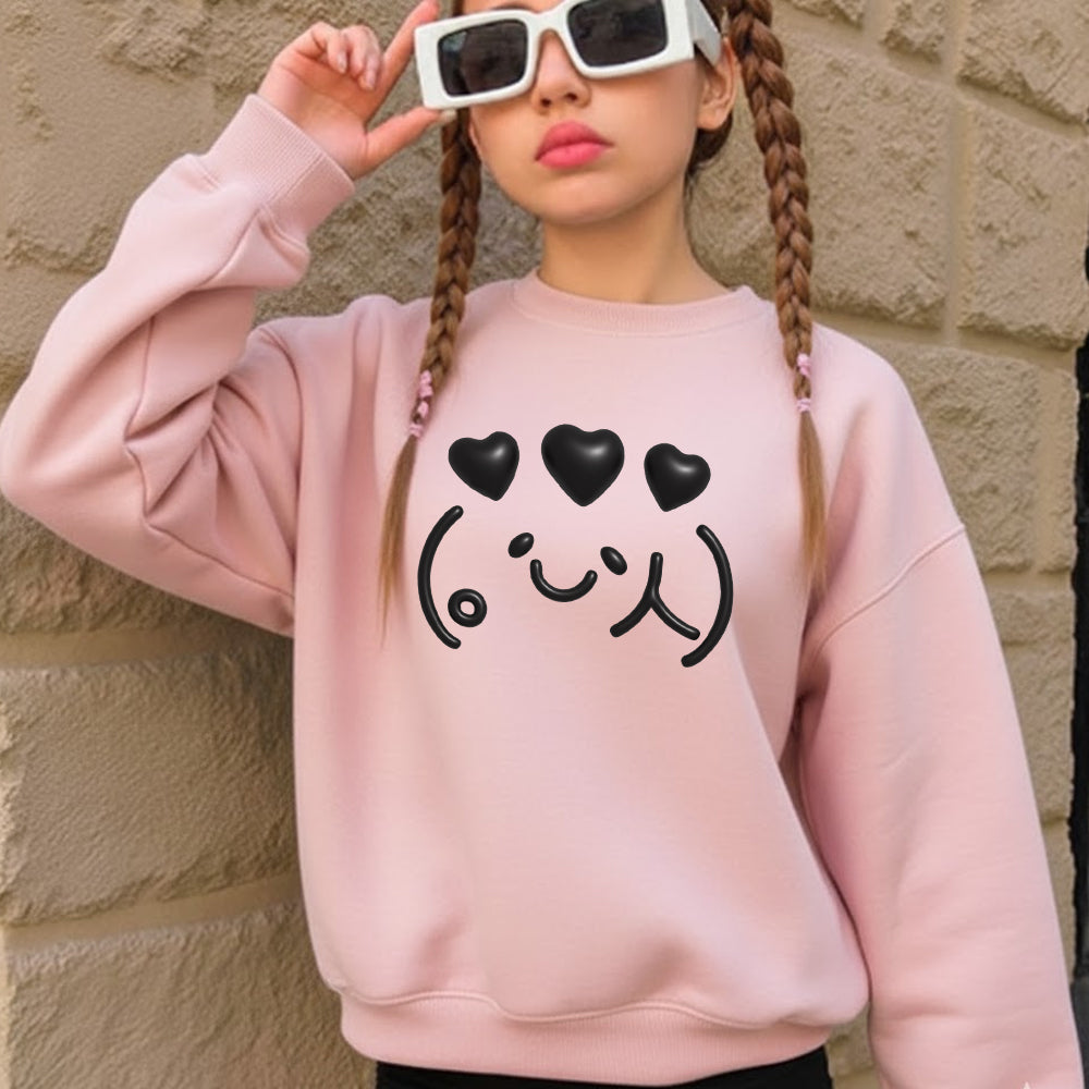 Embrace the kawaii aesthetic with our Kaomoji Vibes Sweatshirt in Pink. This on-trend piece features adorable kaomoji-inspired designs that bring playful character to any wardrobe. Perfect for kids and young adults seeking that cute, Japanese-influenced style, this sweatshirt combines comfort with contemporary fashion sensibility. The soft fabric and charming graphics make it an essential addition to this season's collection for anyone passionate about kawaii culture and expressive, fun fashion choices.