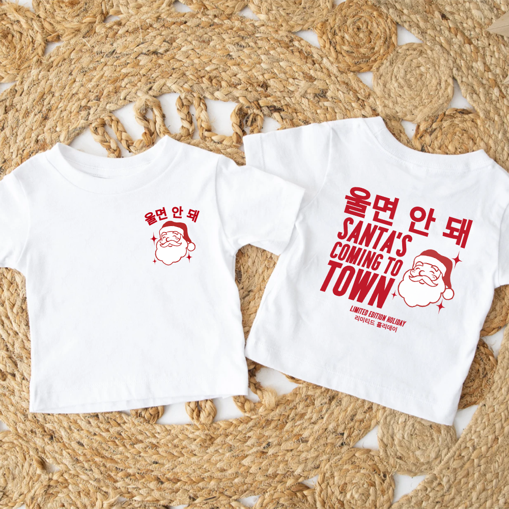 A cool twist on a Christmas Classic. No Need for ugly Christmas Jumpers & t-shirts this season. Featuring '울면 안 돼 - Santa's Coming to Town' graphic slogan. Perfect for celebrating the festive season in style.