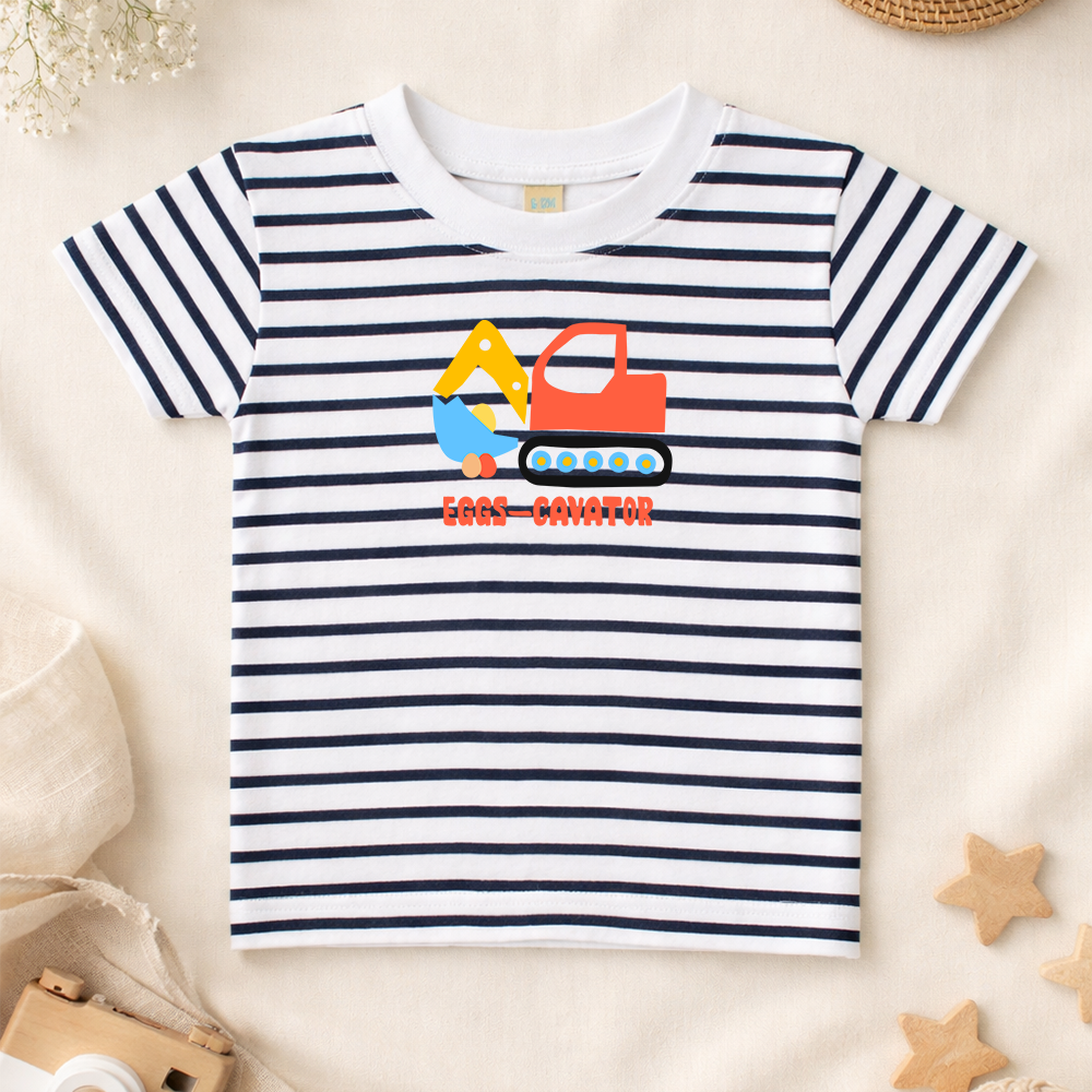 Eggs-Cavator Easter Navy Striped T-Shirt