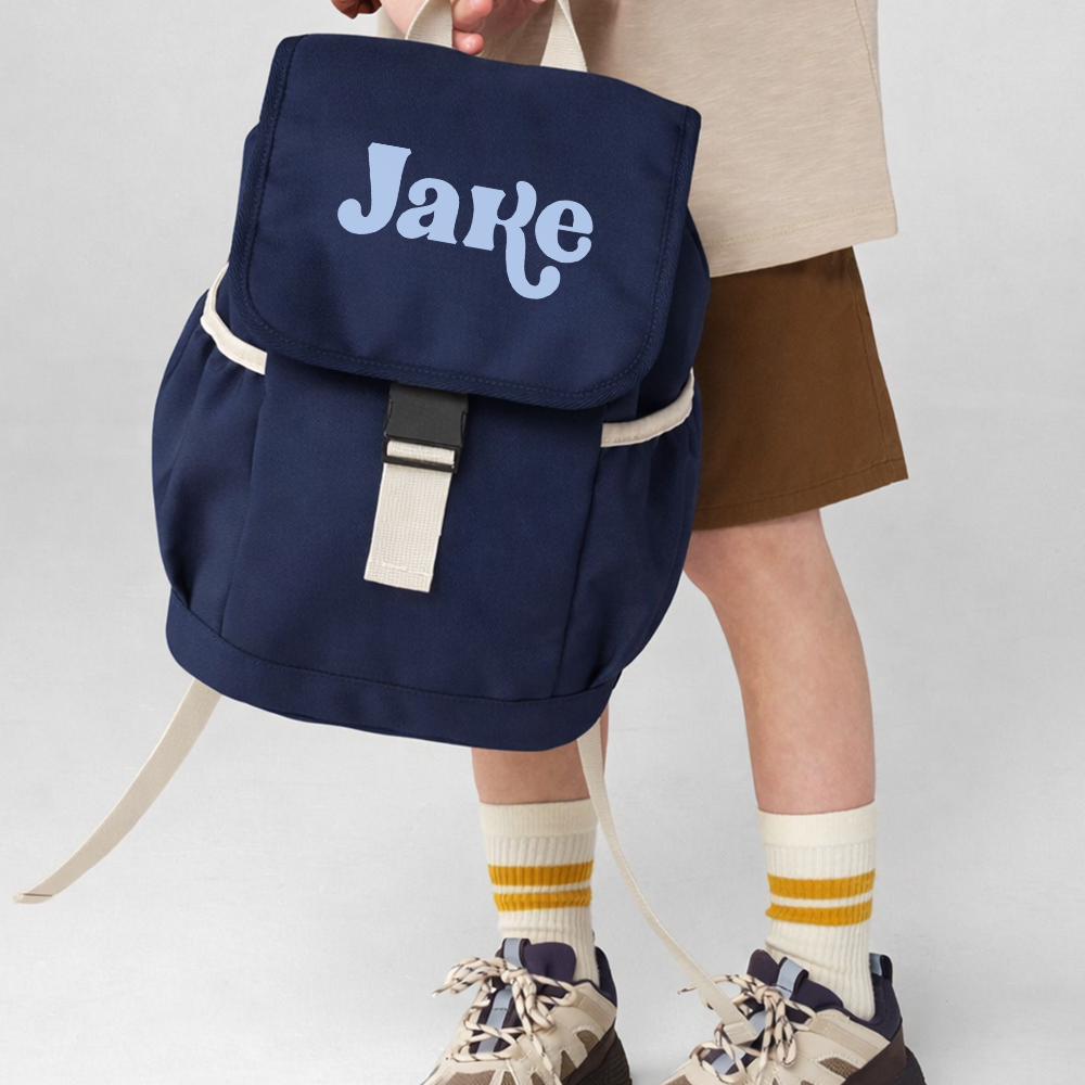 The Kids adventure backpack is made for curious little explorers. The perfect bag for any trip from school to the airport this is a must have in any little ones collection. A drawstring and buckle closure keep things secure, while elasticated side pockets and a handy front zip pocket make organisation easy. Make their bag that much more personal by added a name, nickname or surname in the box below